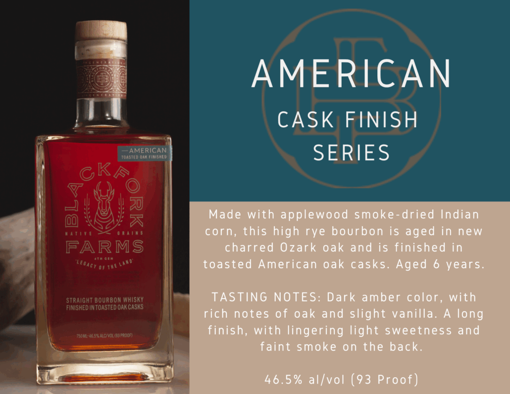 Our Cask Finished Bourbons are aged New Charred Barrels, made from air-dried Ozark Oak.